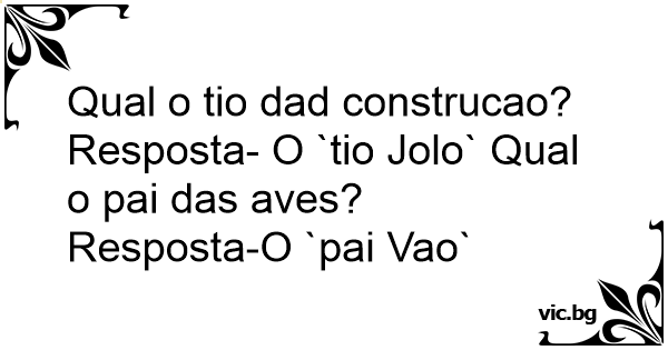 Resposta- O `tio Jolo` Qual o pai das aves?
