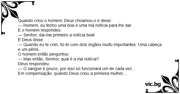 — Quando eu te criei, fiz-te com dois órgãos muito importantes: Uma cabeça e um pênis.