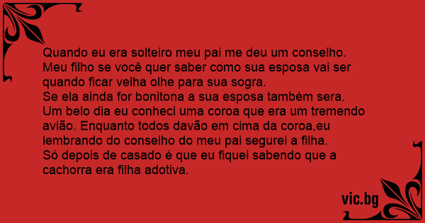 Meu filho se você quer saber como sua esposa vai ser quando ficar velha olhe para sua sogra.