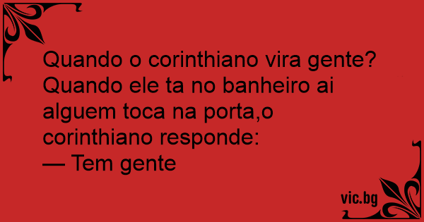 Quando ele ta no banheiro ai alguem toca na porta,o corinthiano responde:
