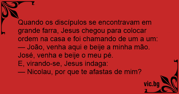 Quando os discípulos se encontravam em grande farra, Jesus chegou para colocar ordem na casa e foi chamando de um a um: