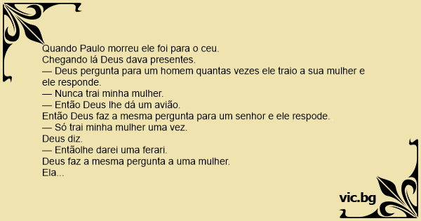 — Deus pergunta para um homem quantas vezes ele traio a sua mulher e ele responde.