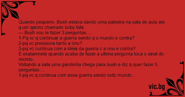 Quando pequeno ,Bush estava dando uma palestra na sala de aula ate q um qaroto chamado boby fala: