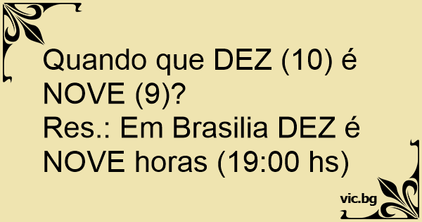 Res.: Em Brasilia DEZ é NOVE horas (19:00 hs)