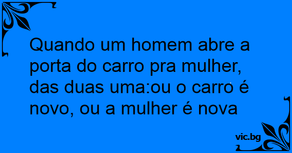 Quando um homem abre a porta do carro pra mulher, das duas uma:ou o carro é novo, ou a mulher é nova