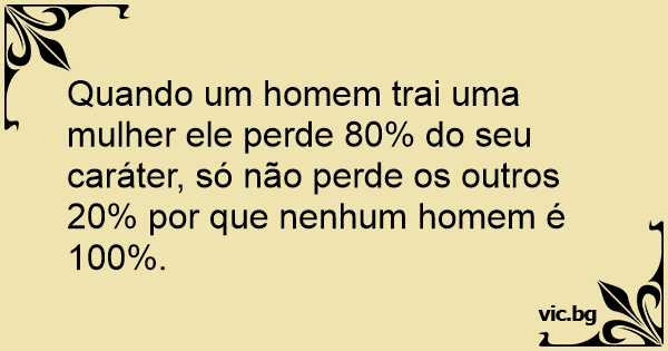 Quando um homem trai uma mulher ele perde 80% do seu caráter, só não perde os outros 20% por que nenhum homem é 100%.