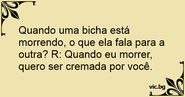 Quando uma вiсhа está morrendo, o que ela fala para a outra? R: Quando eu morrer, quero ser cremada por você.