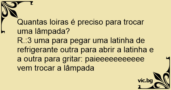 R.:3 uma para pegar uma latinha de refrigerante outra para abrir a latinha e a outra para gritar: paieeeeeeeeeee vem trocar a lâmpada