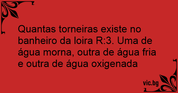 Quantas torneiras existe no banheiro da loira R:3. Uma de água morna, outra de água fria e outra de água oxigenada