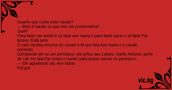 O cara montou encima do cavalo e tá que fala Ave maria e o cavalo correndo.