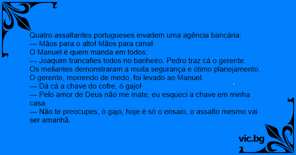 — Não te preocupes, ó gajo, hoje é só o ensaio, o assalto mesmo vai ser amanhã.