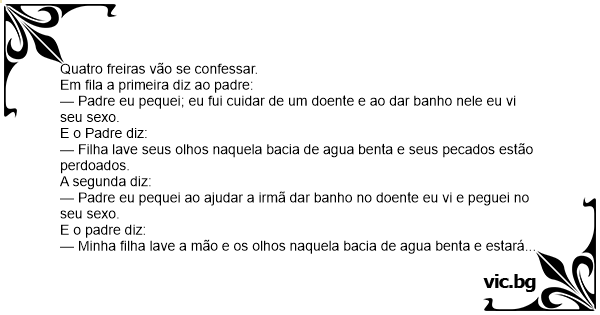 — Padre eu pequei; eu fui cuidar de um doente e ao dar banho nele eu vi seu sеxо.
