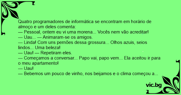 Quatro programadores de informática se encontram em horário de almoço e um deles comenta: