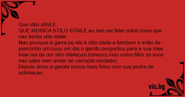 QUE MUSICA STILO STAILE eu nao sei falar outra coisa que nao tenha stilo staile.
