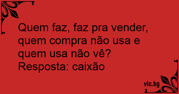 Quem faz, faz pra vender, quem compra não usa e quem usa não vê?Resposta: caixão 0 0 0 Piadas de Adivinhas e Charadas