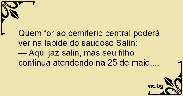 — Aqui jaz salin, mas seu filho continua atendendo na 25 de maio....