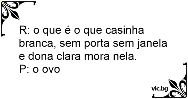 R: o que é o que casinha branca, sem porta sem janela e dona clara mora nela.
