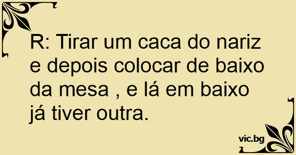 R: Tirar um саса do nariz e depois colocar de baixo da mesa , e lá em baixo já tiver outra.