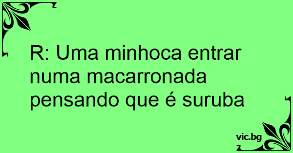 R: Uma minhoca entrar numa macarronada pensando que é suruba