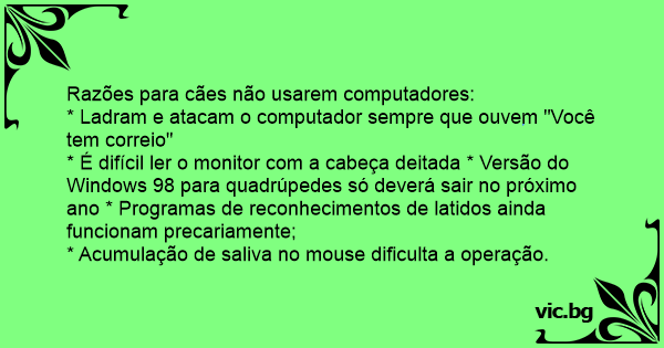 Razões para cães não usarem computadores: