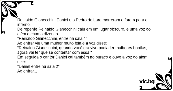 Reinaldo Gianecchini,Daniel e o Pedro de Lara morreram e foram para o inferno.