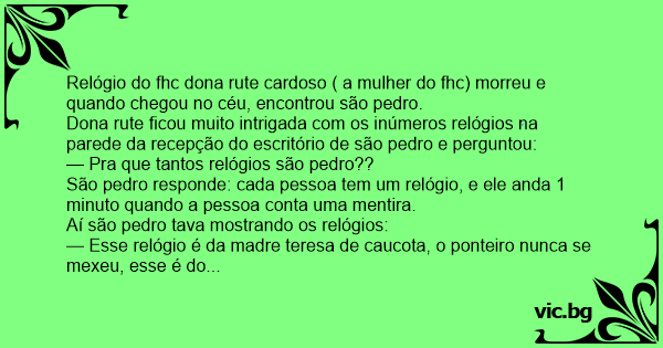 Relógio do fhc dona rute cardoso ( a mulher do fhc) morreu e quando chegou no céu, encontrou são pedro.