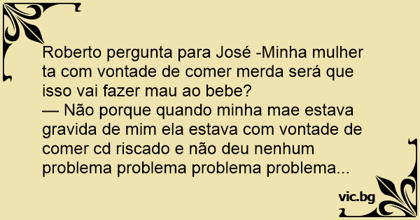 Roberto pergunta para José -Minha mulher ta com vontade de comer меrdа será que isso vai fazer mau ao bebe?
