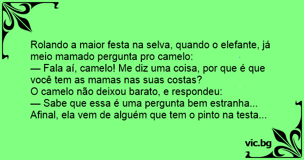 — Fala aí, camelo! Me diz uma coisa, por que é que você tem as mamas nas suas costas?