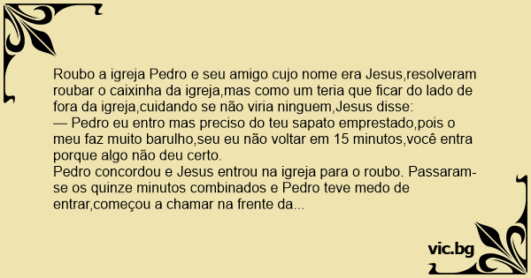 Roubo a igreja Pedro e seu amigo cujo nome era Jesus,resolveram roubar o caixinha da igreja,mas como um teria que ficar do lado de fora da igreja,cuidando se não viria ninguem,Jesus disse: