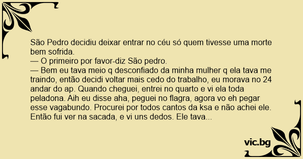 São Pedro decidiu deixar entrar no céu só quem tivesse uma morte bem sofrida.