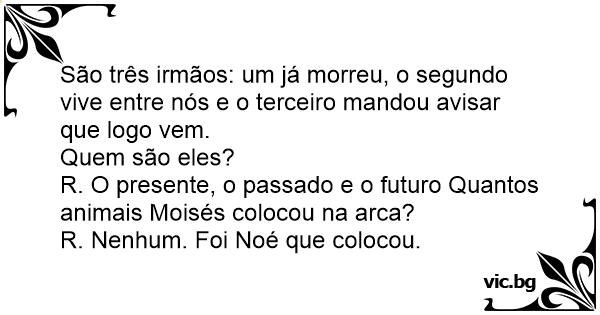 São três irmãos: um já morreu, o segundo vive entre nós e o terceiro mandou avisar que logo vem.