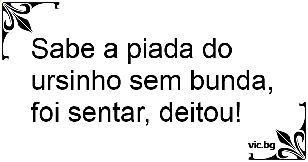 Sabe a piada do ursinho sem bunda, foi sentar, deitou!