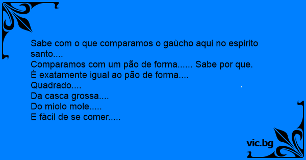 Sabe com o que comparamos o gaùcho aqui no espirito santo....