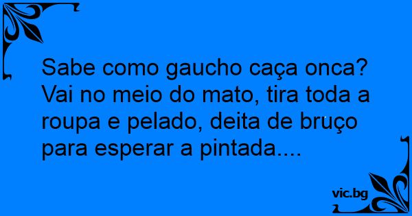 Vai no meio do mato, tira toda a roupa e pelado, deita de bruço para esperar a pintada....