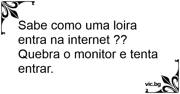 Sabe como uma loira entra na internet ?? Quebra o monitor e tenta entrar.
