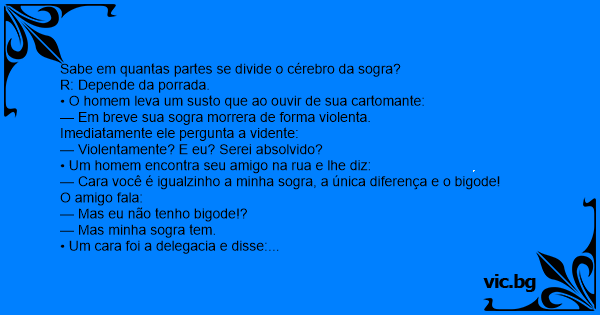 — Cara você é igualzinho a minha sogra, a única diferença e o bigode!