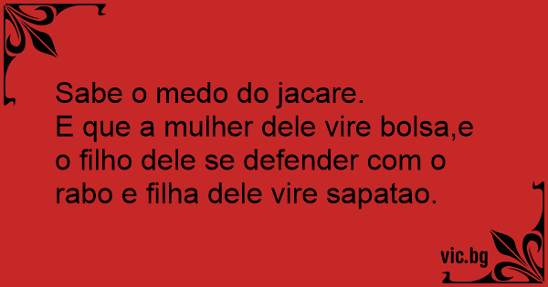 Sabe o medo do jacare. E...
