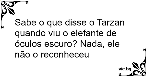Sabe o que disse o Tarzan quando viu o elefante de óculos escuro? Nada, ele não o reconheceu