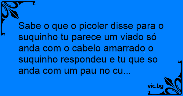 Sabe o que o picoler disse para o suquinho tu parece um viаdо só anda com o cabelo amarrado o suquinho respondeu e tu que so anda com um раu no cu...