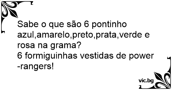 Sabe o que são 6 pontinho azul,amarelo,preto,prata,verde e rosa na grama?