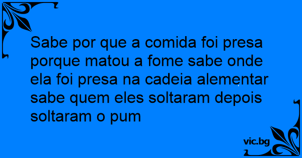 Sabe por que a comida foi presa porque matou a fome sabe onde ela foi presa na cadeia alementar sabe quem eles soltaram depois soltaram o pum