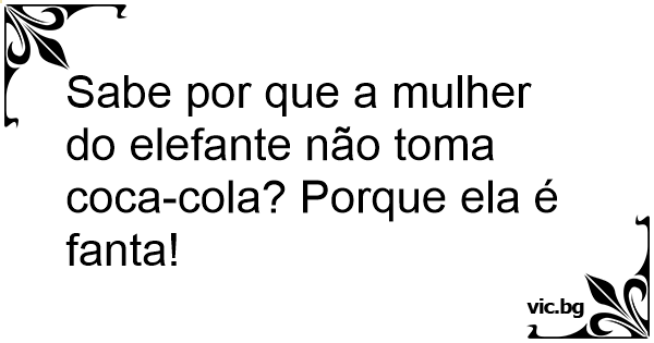 Sabe por que a mulher do elefante não toma coca-cola? Porque ela é fanta!