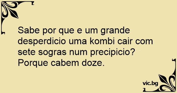 Sabe por que e um grande desperdicio uma kombi cair com sete sogras num precipicio?