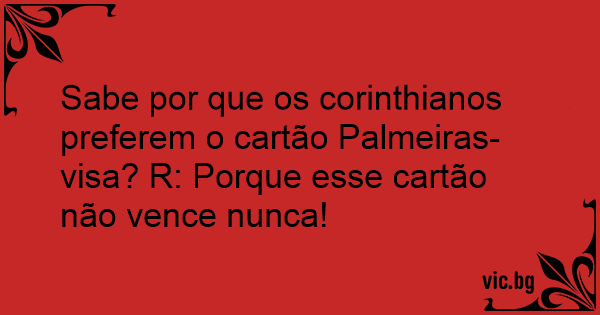 Sabe por que os corinthianos preferem o cartão Palmeiras-visa? R: Porque esse cartão não vence nunca!