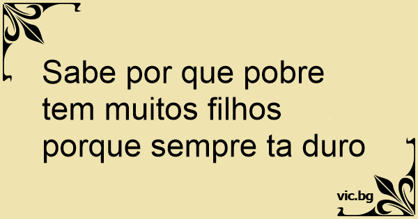 Sabe por que pobre tem muitos filhos porque sempre ta duro