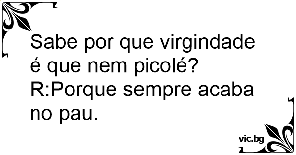Sabe por que virgindade é...