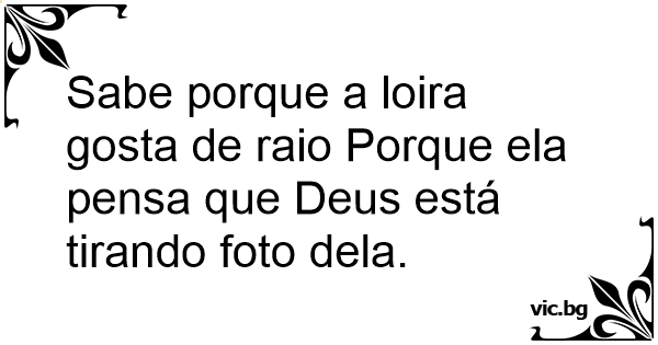 Sabe porque a loira gosta de raio Porque ela pensa que Deus está tirando foto dela.