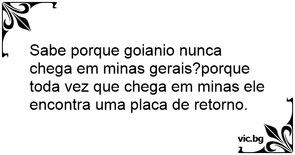 Sabe porque goianio nunca chega em minas gerais?porque toda vez que chega em minas ele encontra uma placa de retorno.