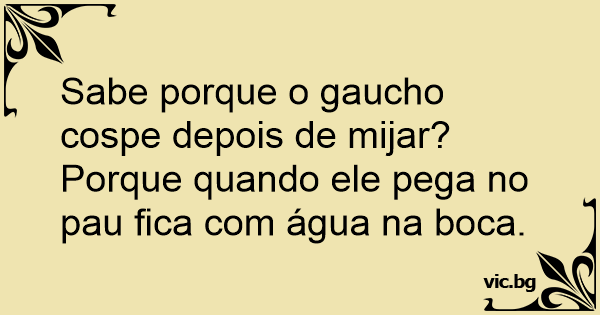 Sabe porque o gaucho cospe depois de mijar?