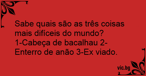 1-Cabeça de bacalhau 2-Enterro de anão 3-Ex viаdо.